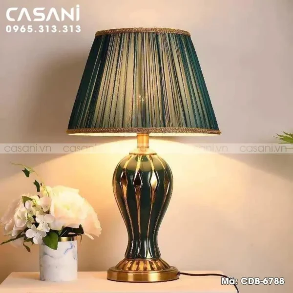 2. Đèn Bàn Trang Trí Gốm Sứ Chụp Vải DDB-6788 Xanh