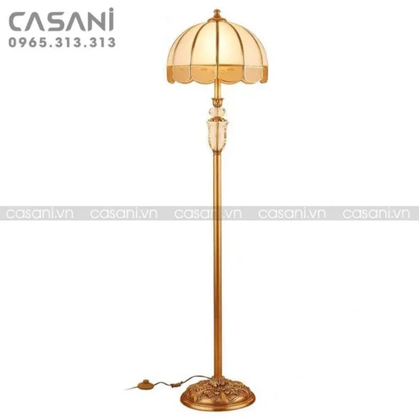 • Chất liệu: thân làm bằng đồng, chao thủy tinh nhân tạo