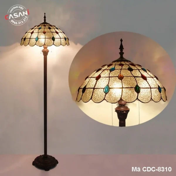 • Chất liệu: Kính màu ghép thủ công (Tiffany) + khung đồng mạ