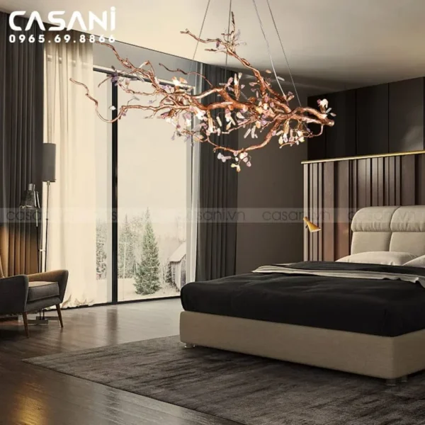 Đặc biệt, những mẫu đèn chùm đồng cổ điển hoặc tân cổ điển với chi tiết mềm mại là lựa chọn lý tưởng để làm nổi bật sự lãng mạn trong phòng ngủ.