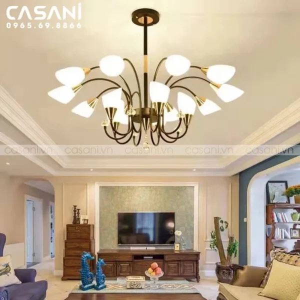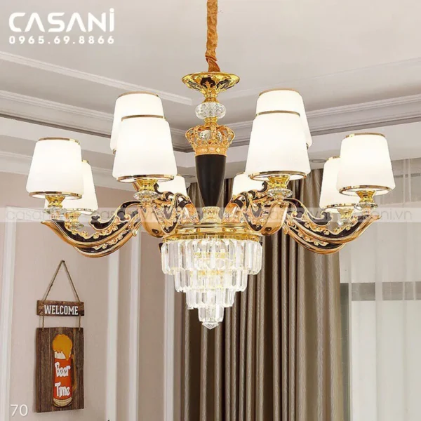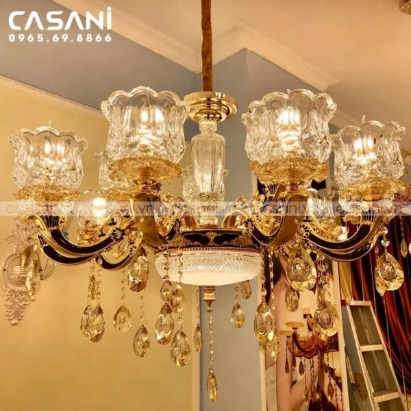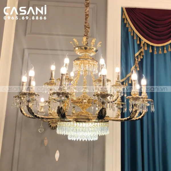 Những mẫu đèn chùm cổ điển tại Casani lấy cảm hứng từ phong cách hoàng gia châu Âu, với kích thước lớn, họa tiết cầu kỳ và chất liệu cao cấp như đồng thau hoặc pha lê. Đây là lựa chọn lý tưởng cho biệt thự, nhà hàng, khách sạn hay các không gian cần sự lộng lẫy, uy nghi.