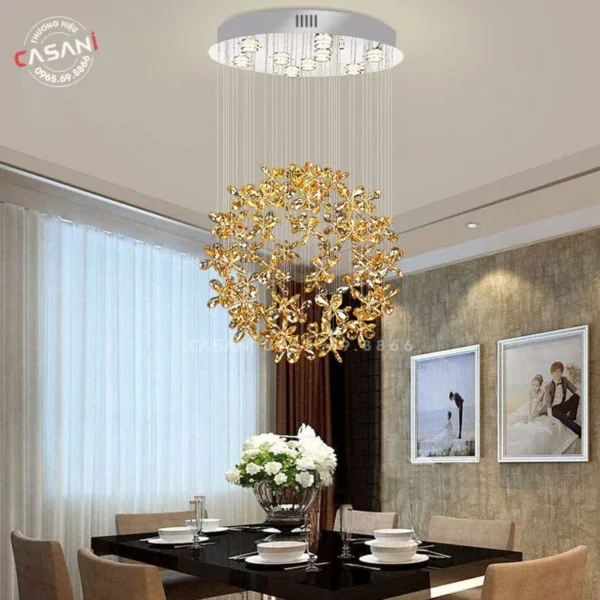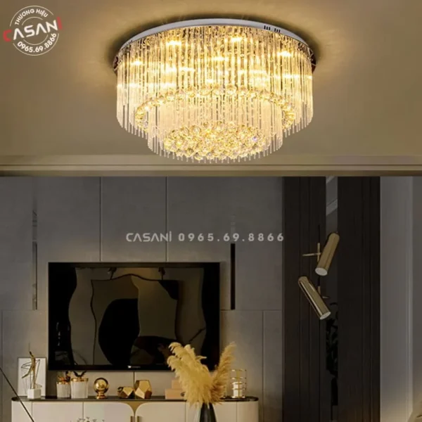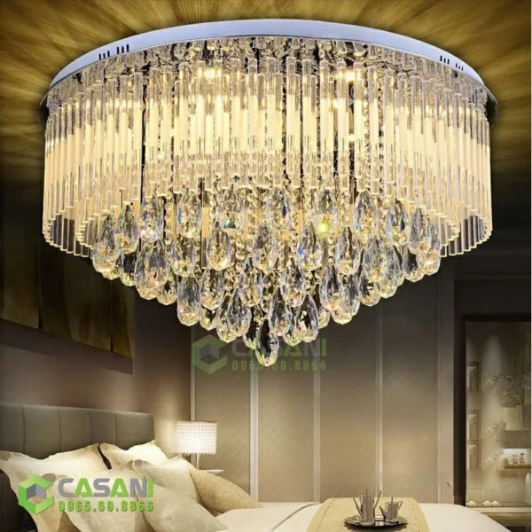 💡 Đèn mâm pha lê – Phản chiếu ánh sáng lung linh, tạo hiệu ứng sang trọng.
