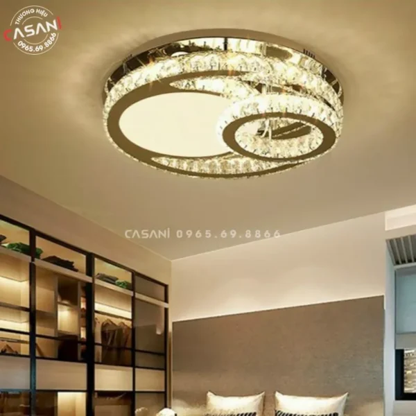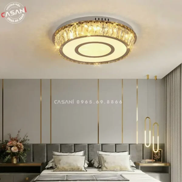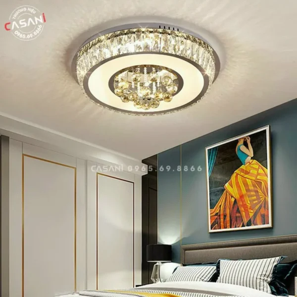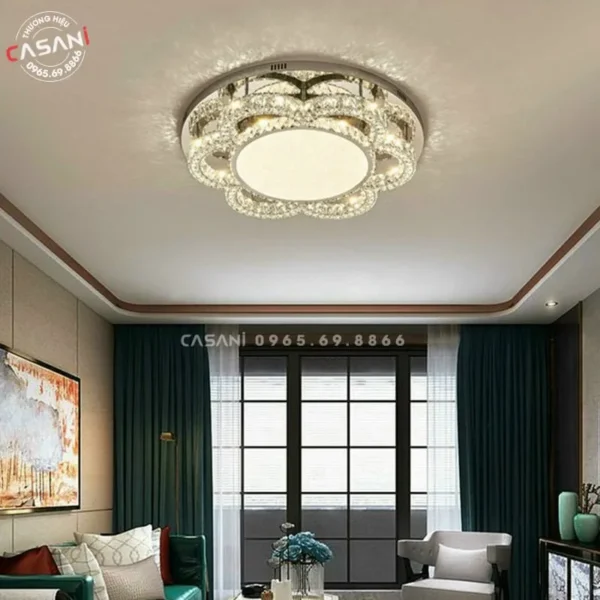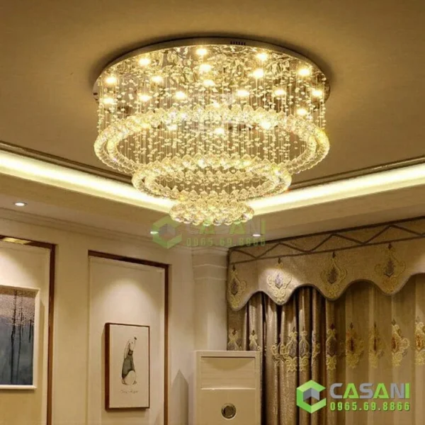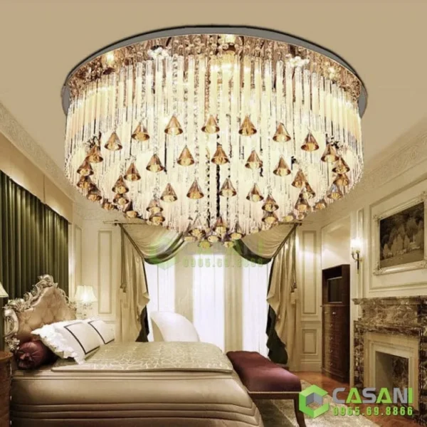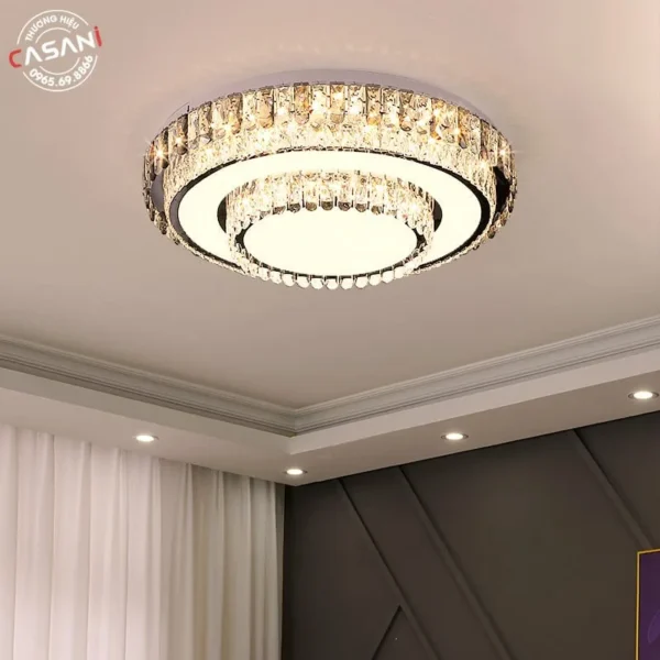 💡 Đèn mâm pha lê – Phản chiếu ánh sáng lung linh, tạo hiệu ứng sang trọng.
