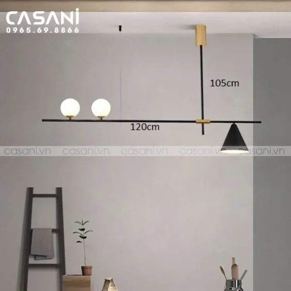 • Đèn thả 3 bóng, đèn hình nón, đèn quả cầu → phù hợp với bàn ăn đơn, bàn đôi